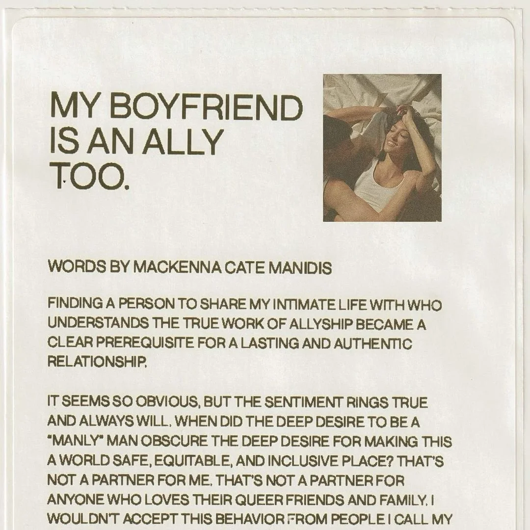 It seems so obvious, but the sentiment rings true and always will. When did the deep desire to be a “manly” man obscure the deep desire for making this a world safe, equitable, and inclusive place? That’s not a partner for me. That’s not a partner for anyone who loves their QUEER friends and family. I wouldn’t accept this behavior from people I call my friends, why would I accept it from someone who gets to be my boyfriend?